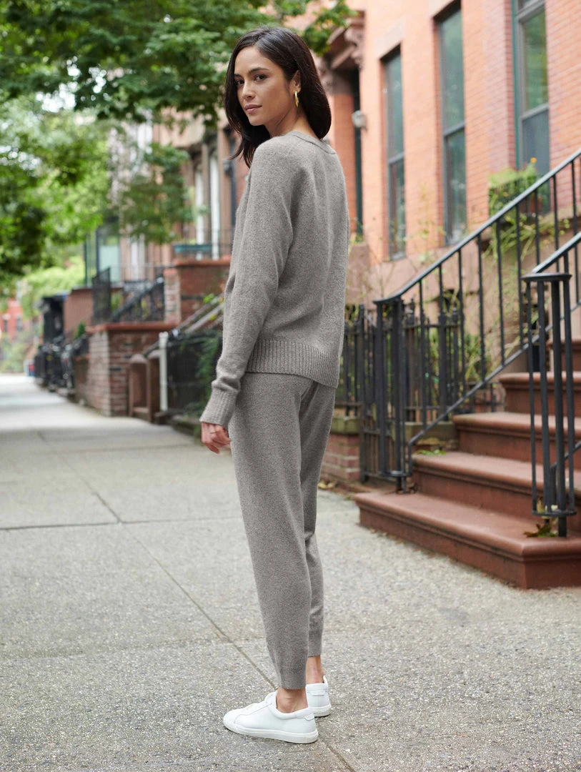 We took our cashmere joggers to a cozy new place for fall. More luxurious than ever—and with extra coverage for on the go—these are perfect for early-morning coffee runs, afternoon brunch, and beyond.