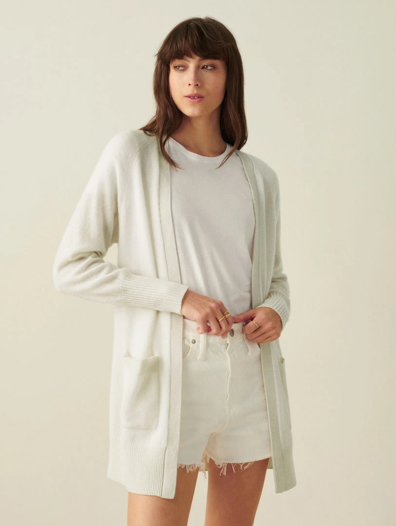 The Cashmere Open Cardigan is a layering piece to reach for day and night. Defined by ribbed trims, the relaxed style features patch pockets perfectly sized to hold your keys and phone. The length is not only flattering on all body types, but acts as a chic jacket alternative during transitional weather. We love wearing it with the Cotton Modal Tank Top.