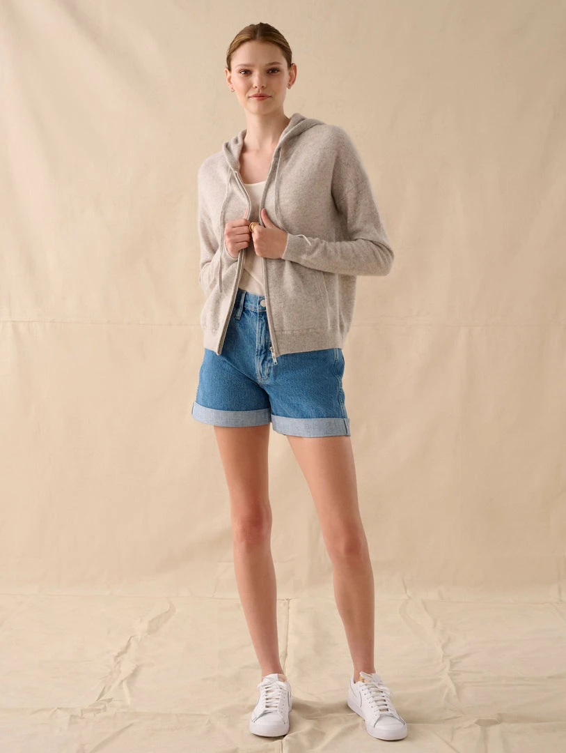 We updated our Cashmere Zip Up Hoodie and gave it a longer length that hits at the most flattering place. Combining form with function, the drawcords and trim details give it an elevated feel. Pair it with the matching cashmere shorts for extra style points.