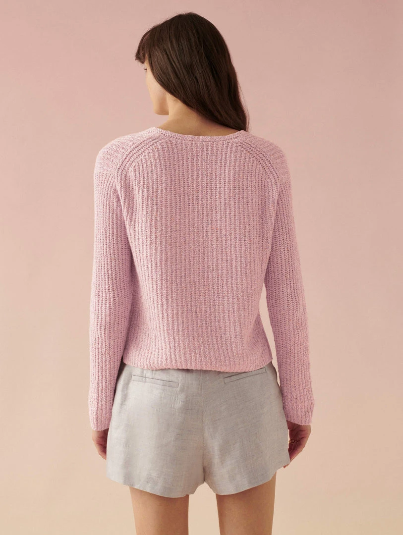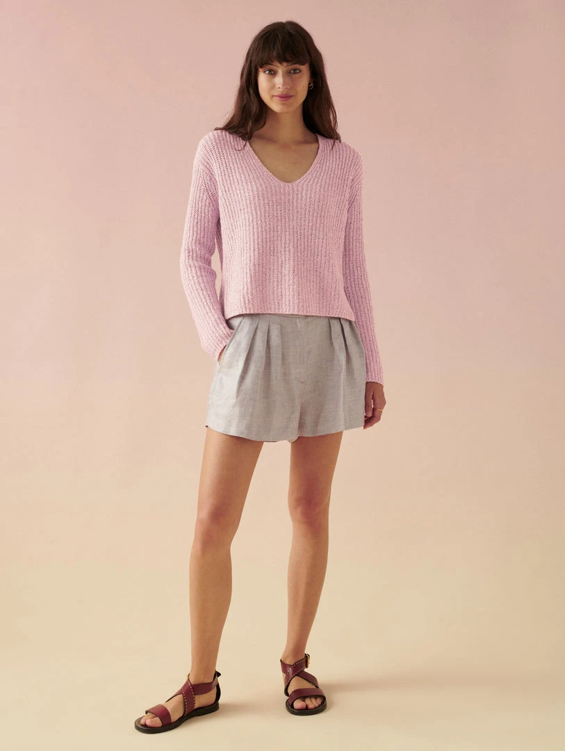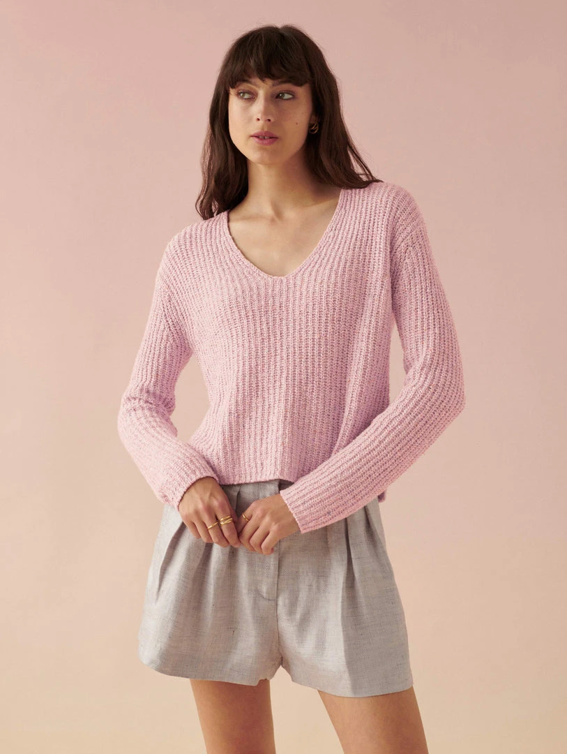 Simply put, this V-neck sweater is a sunny-day essential. Lightweight, ultra-soft, and silky smooth, it’s woven from a marled, rib-knit in cotton that’s blended with linen and silk. Make it your spring go-to, the perfect foundation to your well-rounded wardrobe.