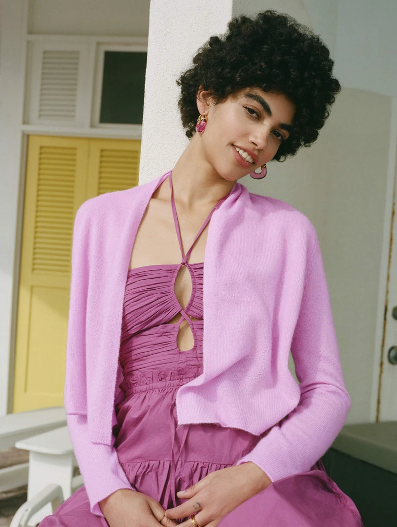 Part of our Essentials Collection, the Essential Cashmere Cropped Trapeze is a new take on our much-loved cardigan silhouette. The cropped style pairs well with high-waisted denim or pants and can easily be dressed up for a night out. The featherweight silhouette drapes beautifully, while the sleeves are more fitted.