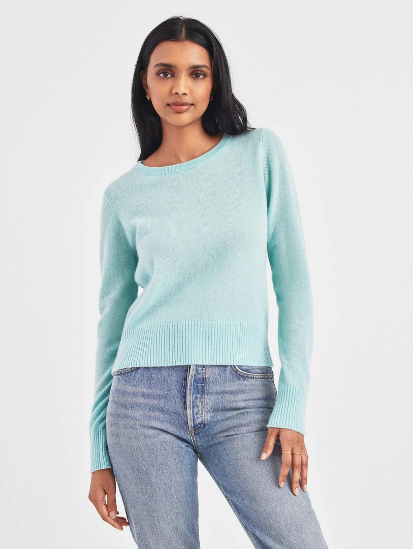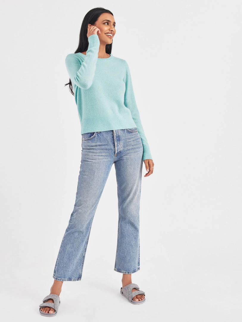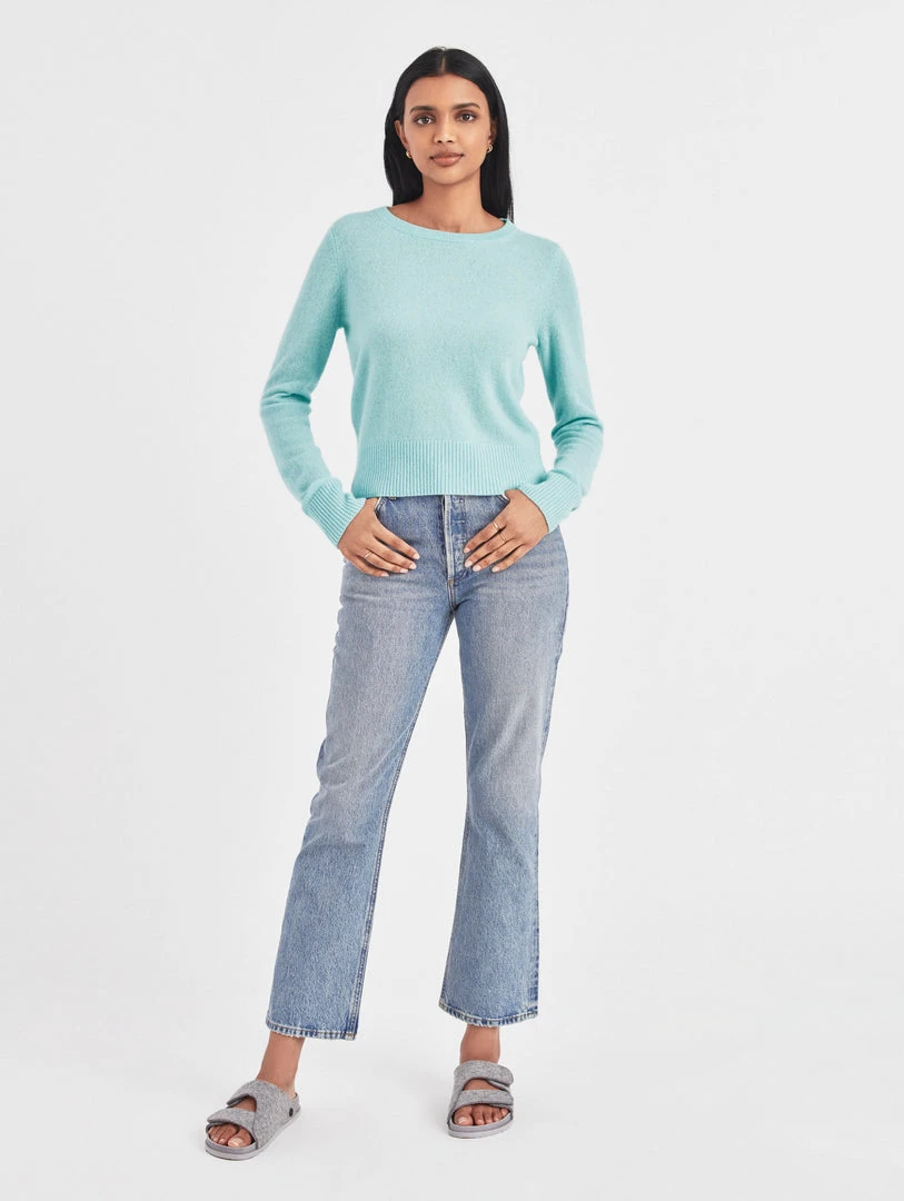 In creating our newest Essential, our designers envisioned a sprightlier little sister to the iconic Essential crewneck. The end result is a shrunken silhouette with a lean feel that’s nothing short of figure-flattering. The waist-shaping fit makes it easy to style back to denim, high-waisted trousers, and skirts. It complements the Cashmere Travel Wrap perfectly—and with a rainbow of hues to choose from, the color combinations are endless.