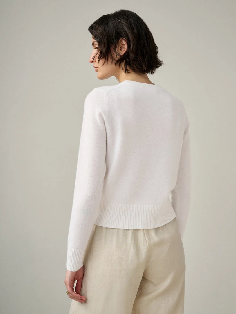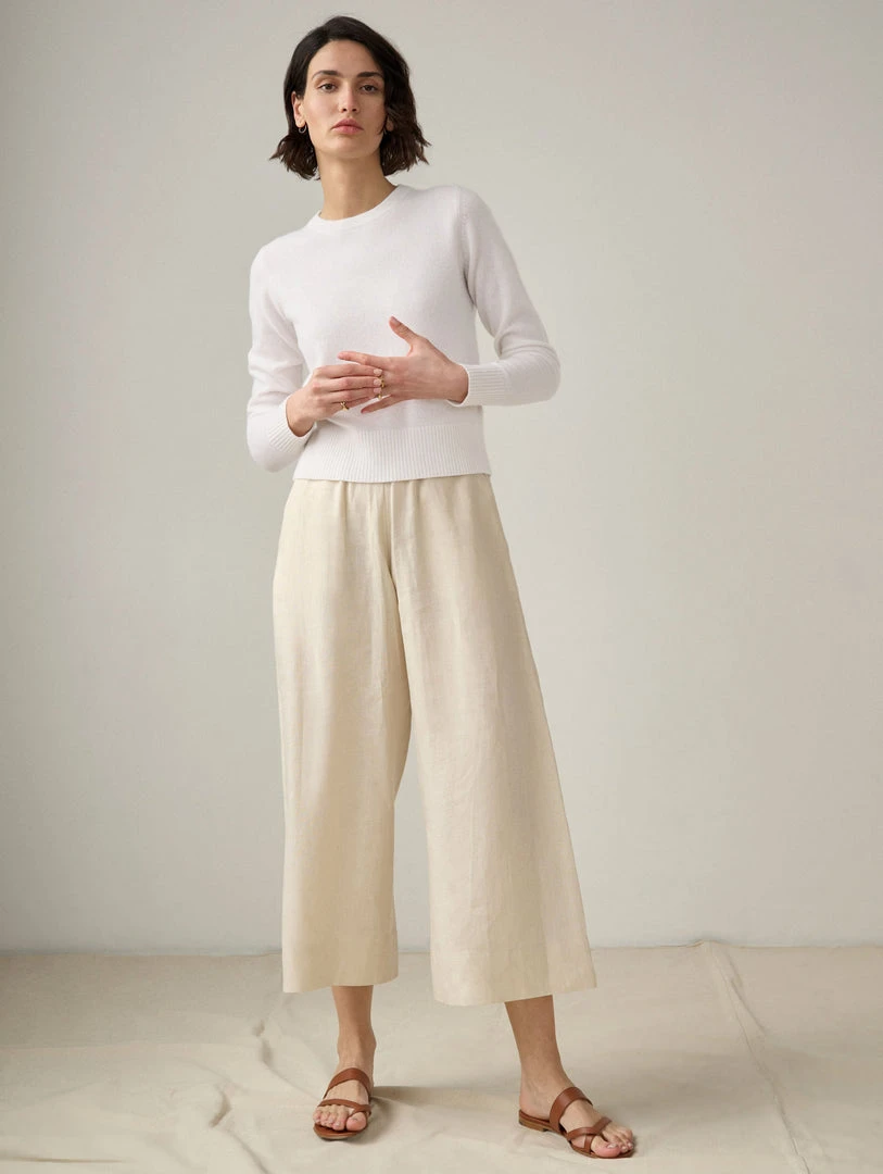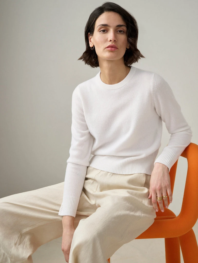 In creating our newest Essential, our designers envisioned a sprightlier little sister to the iconic Essential crewneck. The end result is a shrunken silhouette with a lean feel that’s nothing short of figure-flattering. The waist-shaping fit makes it easy to style back to denim, high-waisted trousers, and skirts. It complements the Cashmere Travel Wrap perfectly—and with a rainbow of hues to choose from, the color combinations are endless.
