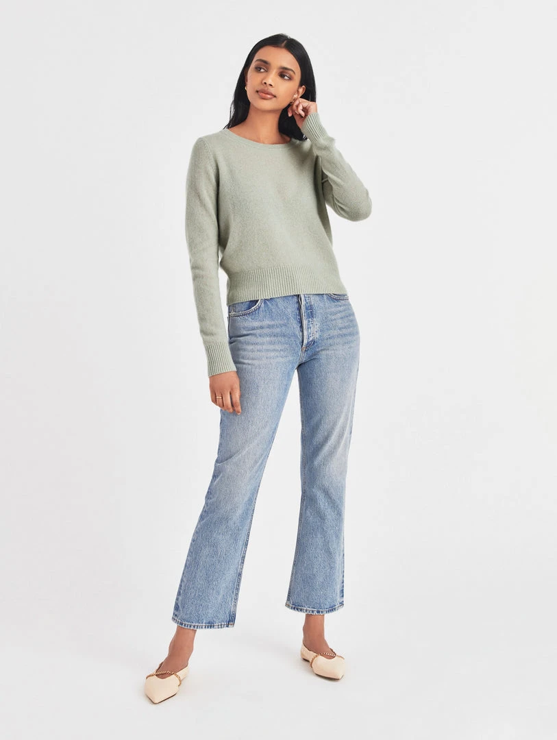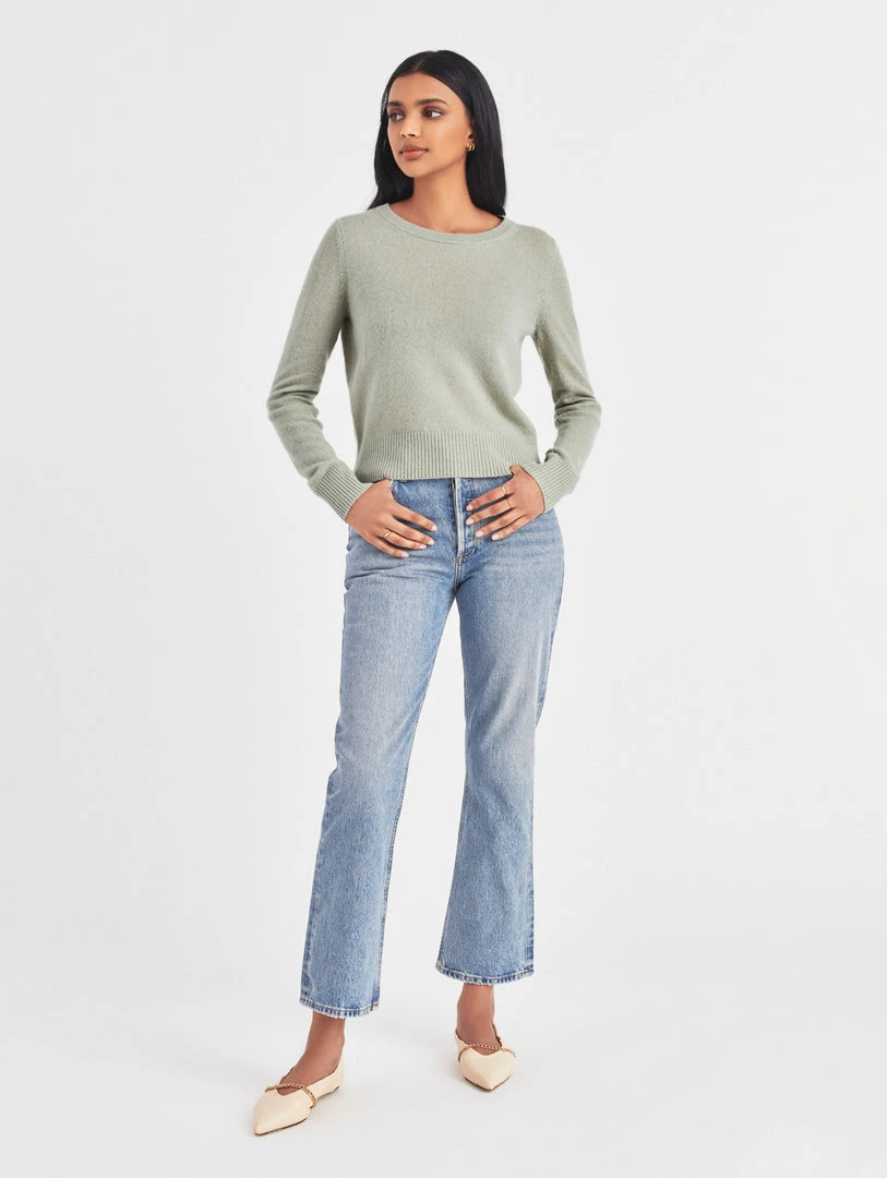 In creating our newest Essential, our designers envisioned a sprightlier little sister to the iconic Essential crewneck. The end result is a shrunken silhouette with a lean feel that’s nothing short of figure-flattering. The waist-shaping fit makes it easy to style back to denim, high-waisted trousers, and skirts. It complements the Cashmere Travel Wrap perfectly—and with a rainbow of hues to choose from, the color combinations are endless.