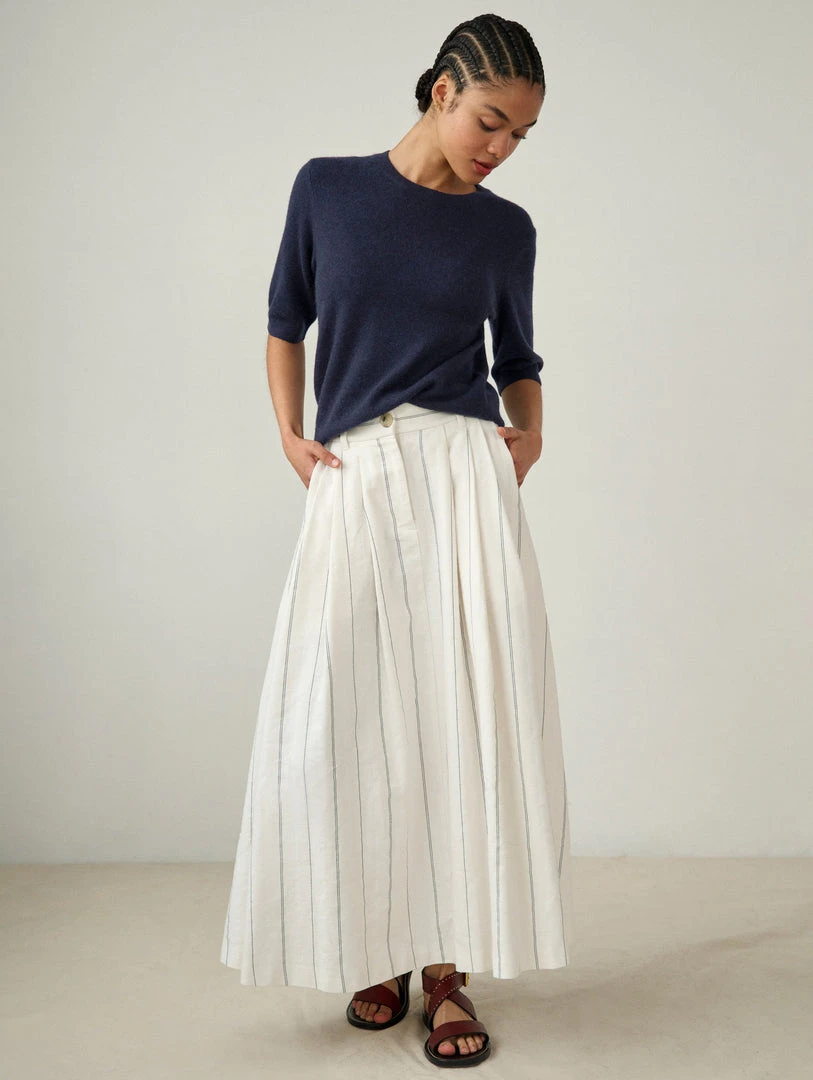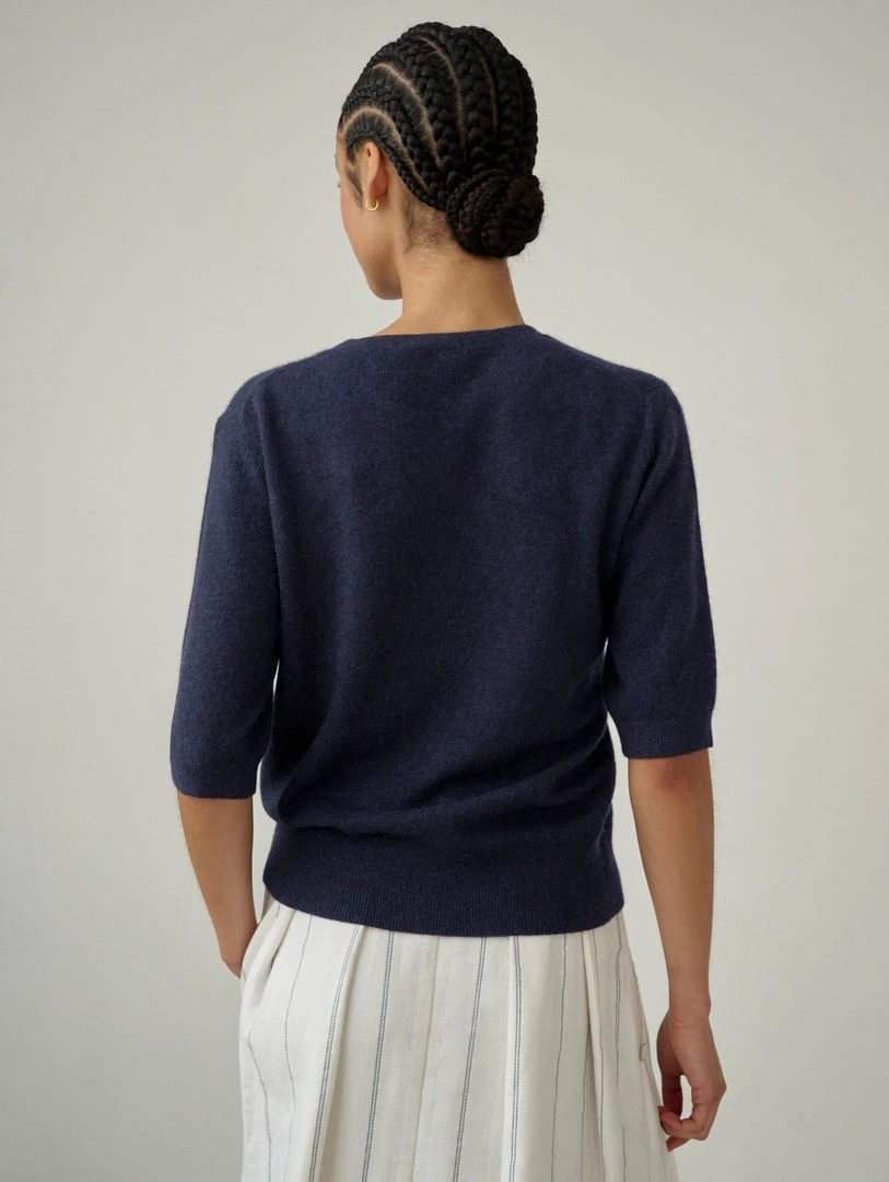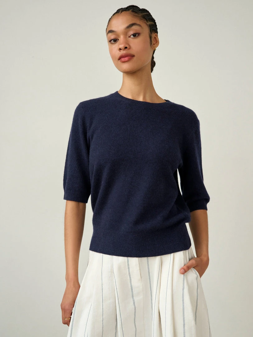 The Essential Cashmere Tee combines the comfort and ease of your favorite tee with the refinement of cashmere. It’s less fitted than in seasons past with a straight-not-slouchy silhouette. Think of it as the perfect everyday sweater—or like an ultra-luxurious T-shirt.