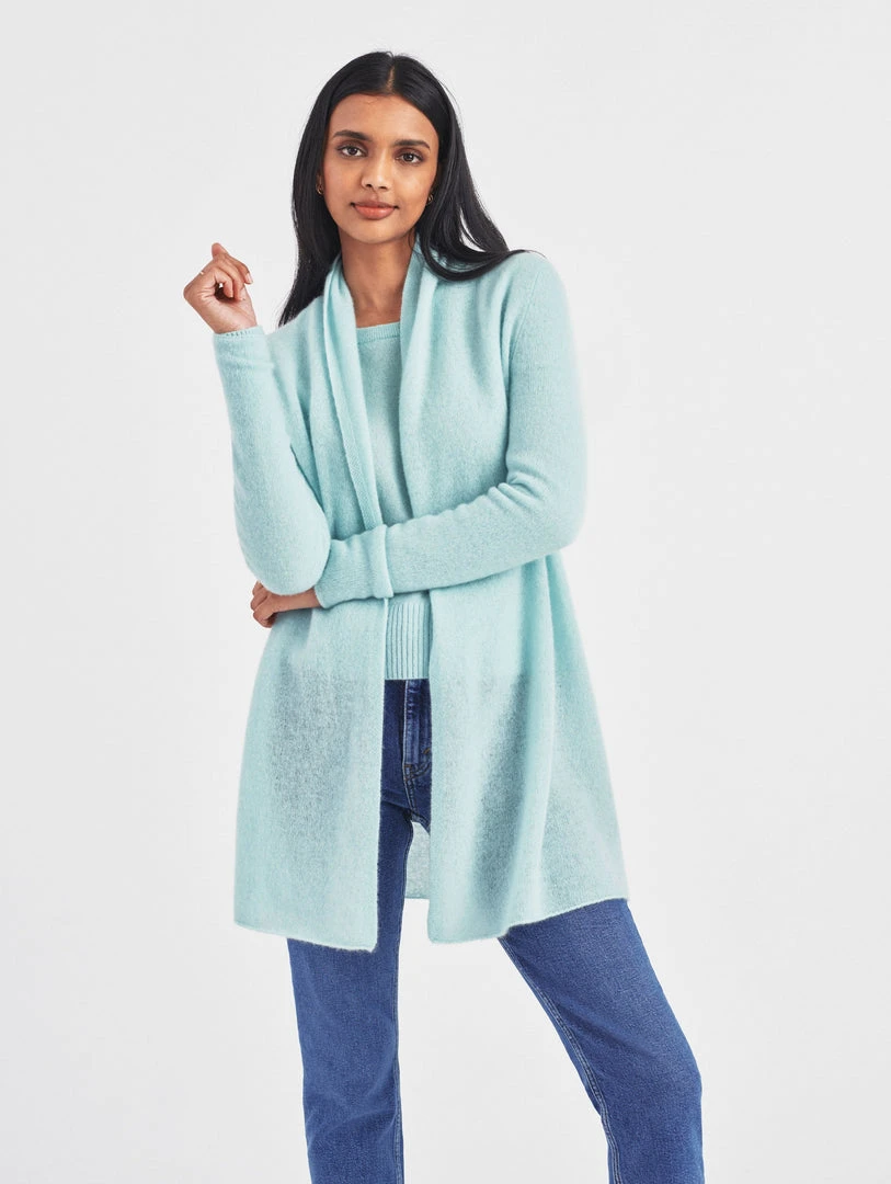 The longest-running piece in our Essentials Collection, the Cashmere Trapeze Cardigan, is a chic fingertip-length open sweater that works on every body type. No matter what color you choose, you’ll want to wear this timeless style season after season.