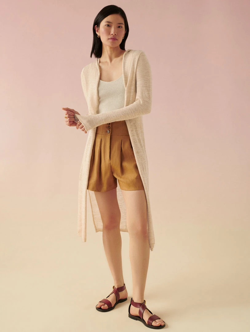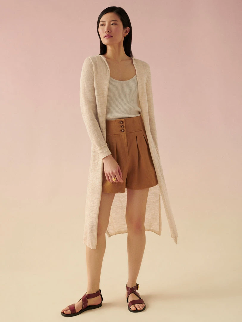 The Linen Slub Long Hooded Cardigan is a cool, breezy piece you’ll want to pack for vacation–it’s perfect for covering up at the beach. It’s made from a lightweight linen blend and has a loose silhouette with a generous hood. Once you’re ready to return home, it’ll serve as an effortless robe to style over everything from dresses to tank tops.