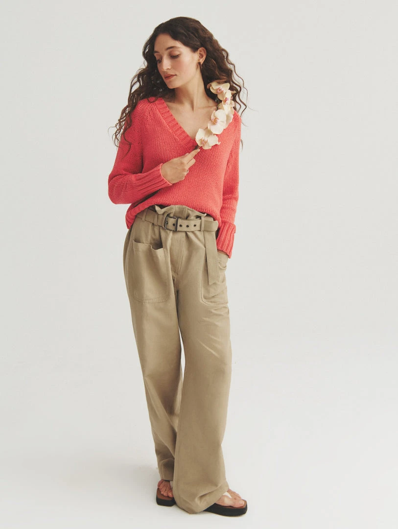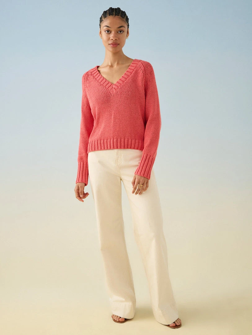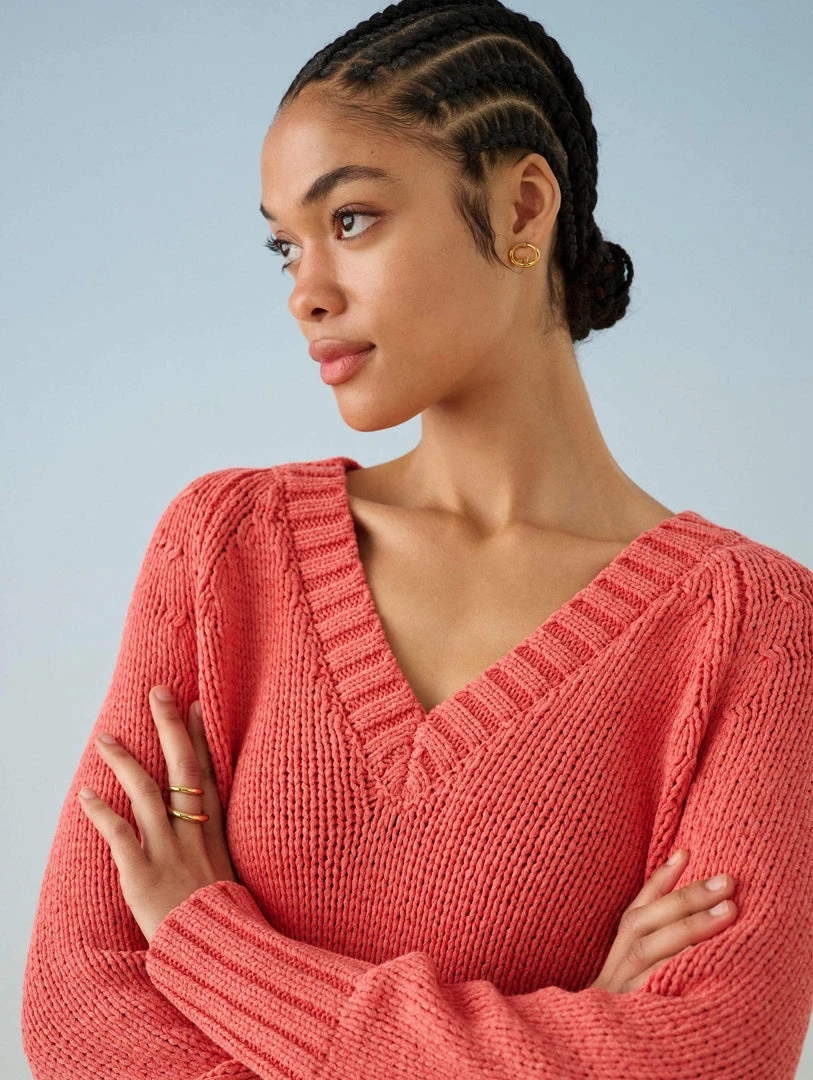 Our new Lofty Cotton Cropped V Neck is a great seasonless layer. With a lightly shrunken length, but boxier fit, you can effortlessly style this V-neck knit with a pair of high-waisted skinny jeans or throw it on over a summertime midi dress as the temperature begins to cool. Made using yarns produced from recycled materials, it’s a consciously crafted sweater you’ll never want to leave home without.