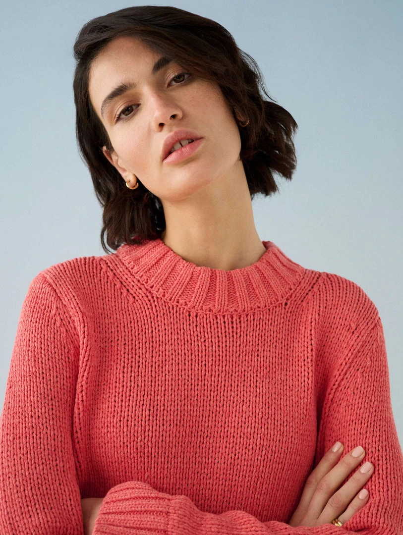 Our Lofty Cotton High Rib Crewneck boasts the perfect weight for a chilly summer evening stroll and as the months of the calendar flip, it will effortlessly transition your wardrobe into fall. This sweater is meant to hit at your hip, meeting your favorite pair of mid-rise pants perfectly. It doesn’t only look good, though; the chunky layer is also crafted of yarns produced from recycled raw materials, certified by the Global Recycled Standard.