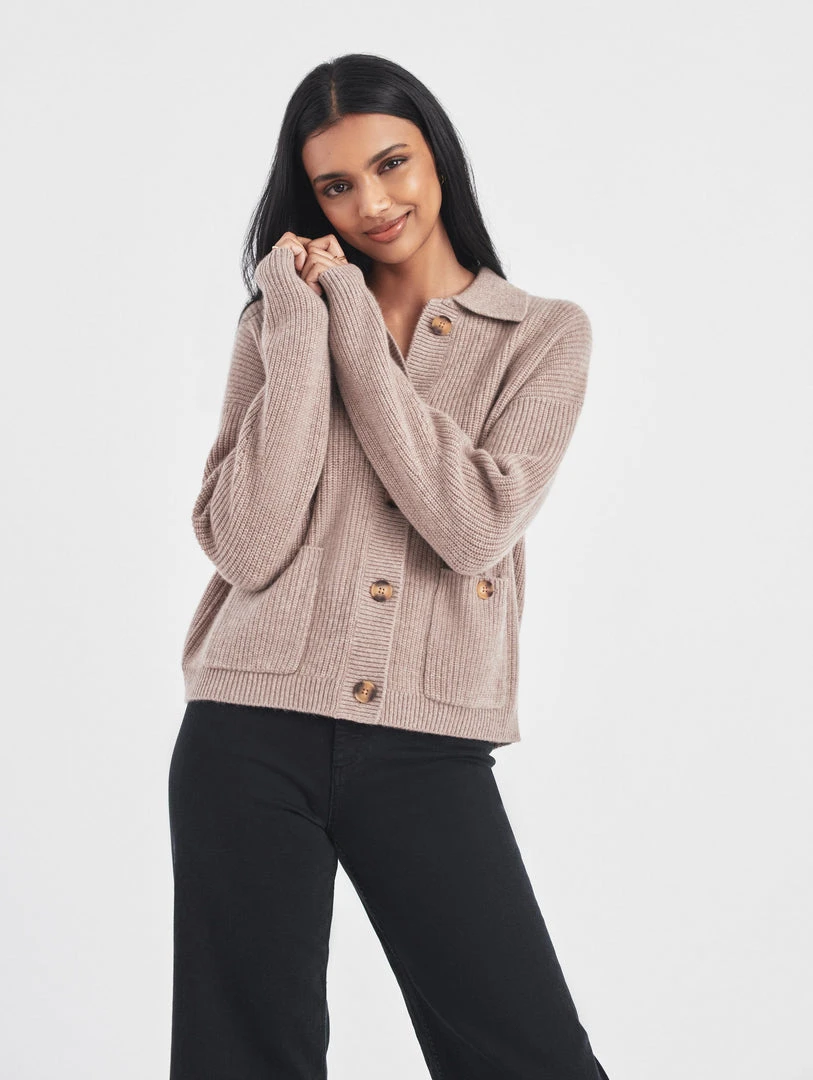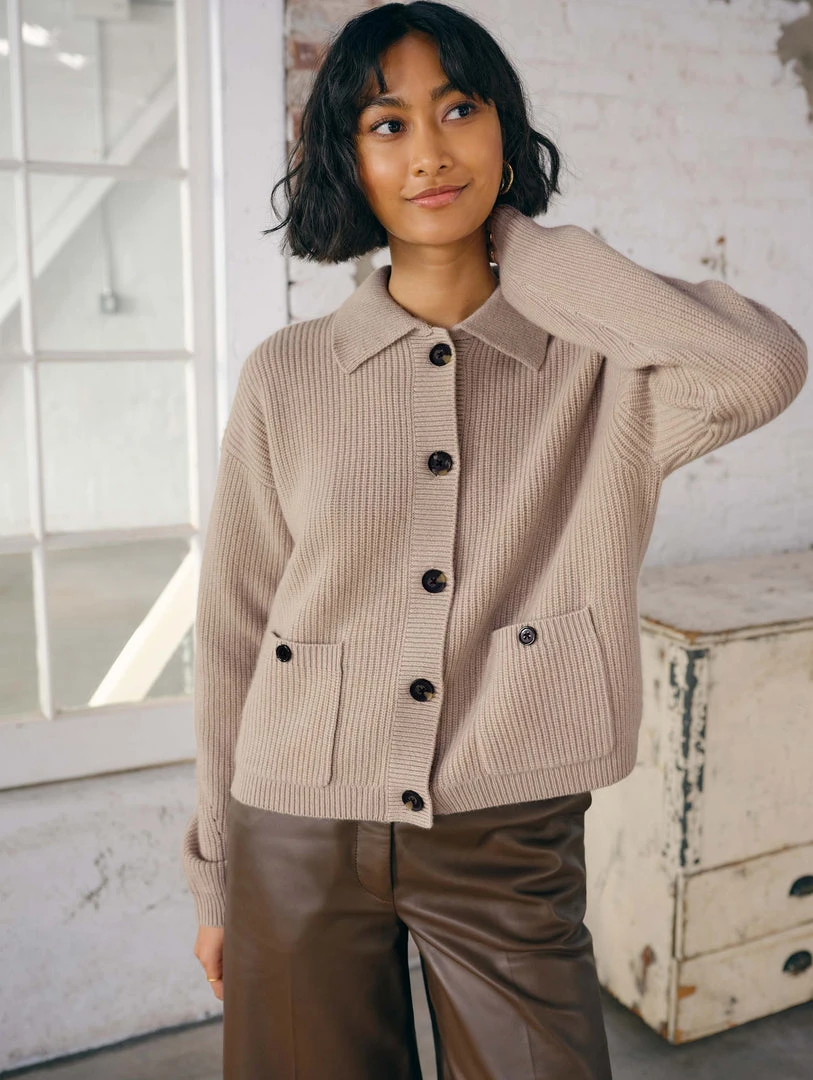 This Cashmere Collared Jacket hasĀ the handle of a jacketĀ but the comfort of a sweater, which makes it a worthy investment for this season and beyond. It has a relaxed fit enhanced by dropped shoulders and two patch pockets on the front. Style yours with a turtleneck now and with a simple tee later when the weather warms.