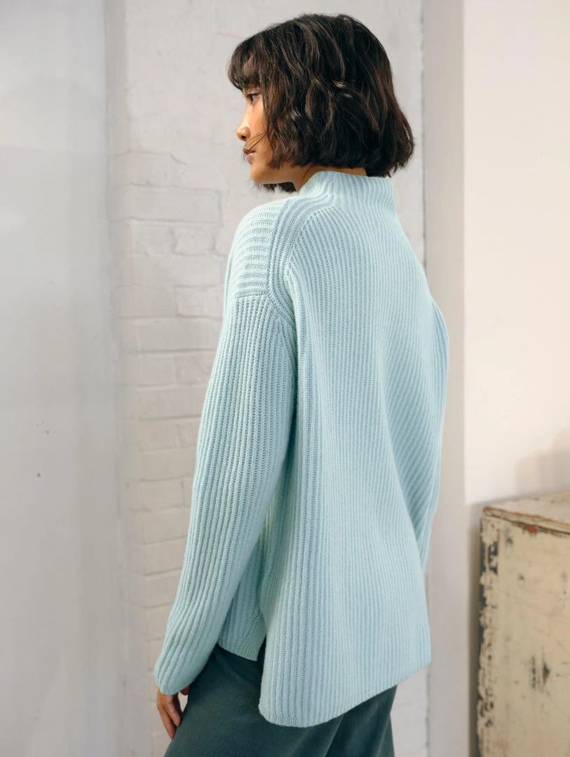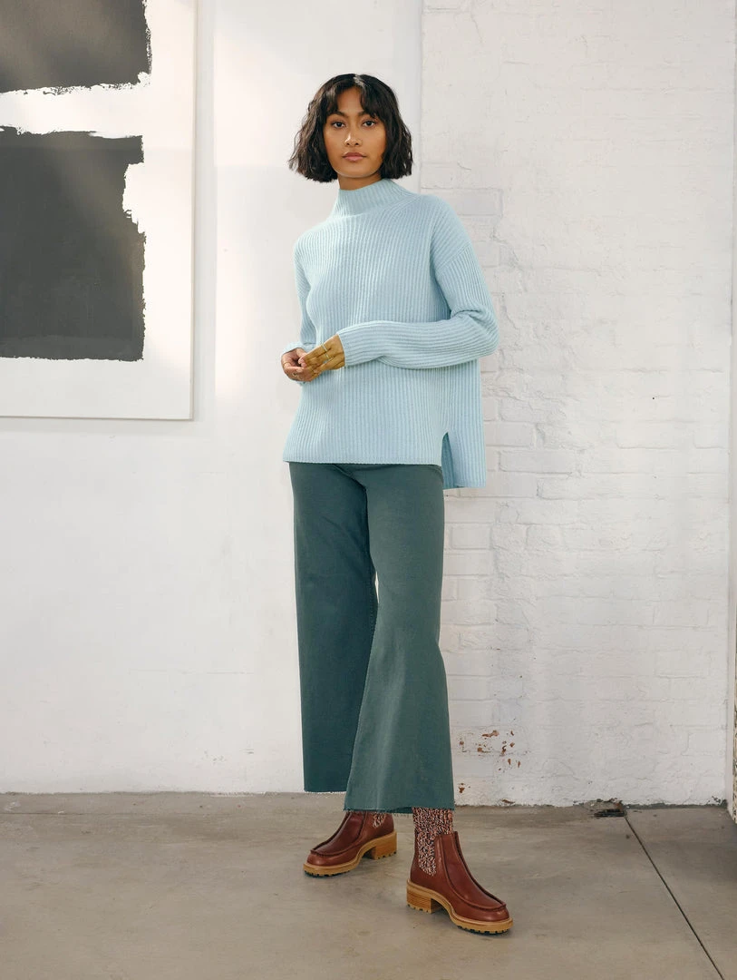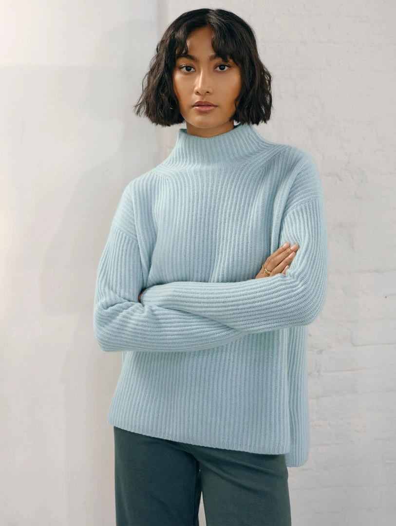 This Recycled Cashmere Ribbed Standneck features a mock neckline and comfortable raglan sleeves in a roomier silhouette for days spent indoors or on-the-go. Style yours with denim or tailoring in coordinating tones.