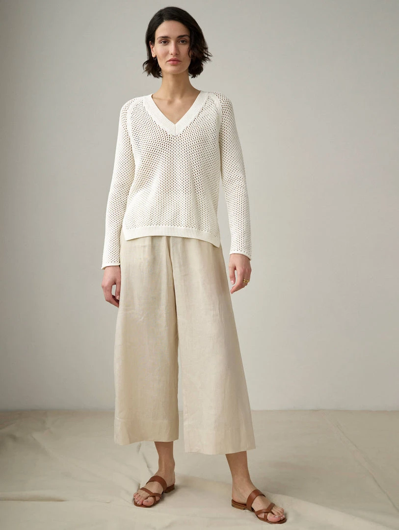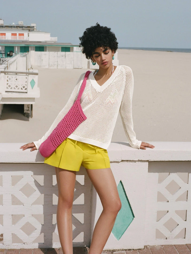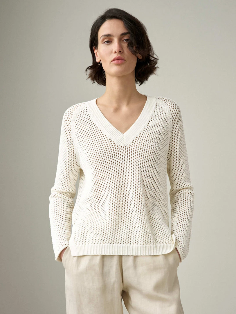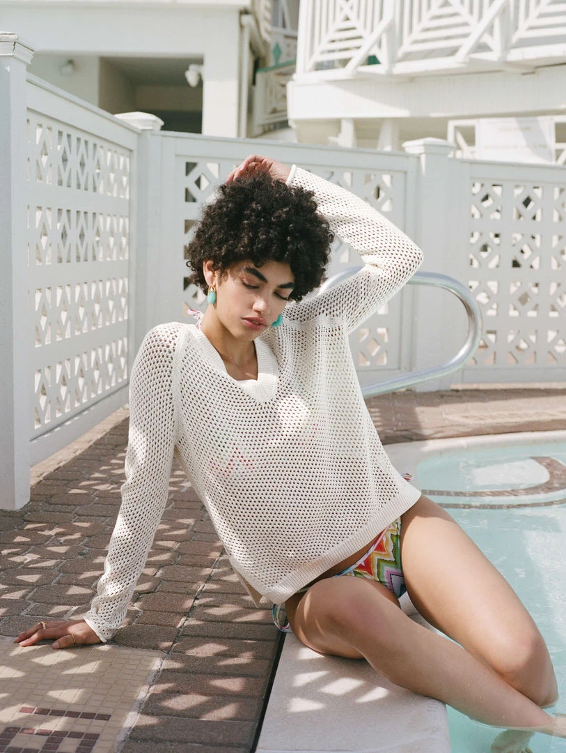 Our Cotton Mesh V Neck is spun from mercerized cotton with an open-knit construction, so it’ll keep you cool during summer evenings. The split hemline allows for an easeful fit, while also flattering the hips. What’s more, the BCI cotton supports more sustainable farming. Wear yours over a tank top on city strolls or as a swimsuit cover-up on beach breaks.