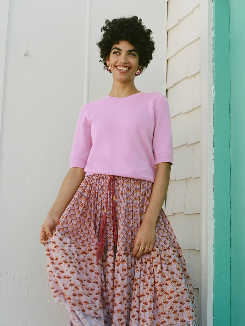 The Essential Cashmere Tee combines the comfort and ease of your favorite tee with the refinement of cashmere. It’s less fitted than in seasons past with a straight-not-slouchy silhouette. Think of it as the perfect everyday sweater—or like an ultra-luxurious T-shirt.