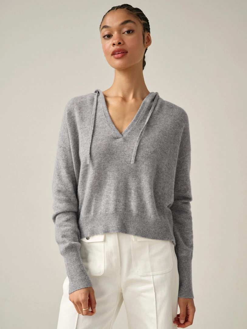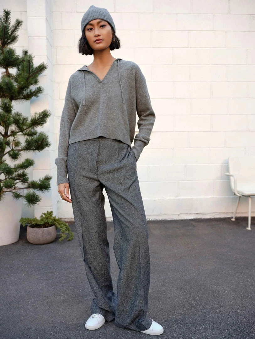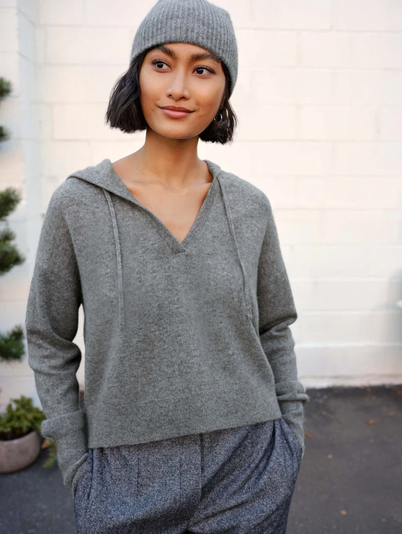 This Cashmere Cropped Hoodie will be your new weekend go-to. An updated V-neckline and functional drawstring ties add up to an elevated cashmere knit with sporty flair. The cropped hemline is the perfect complement to high-rise pants and skirts.