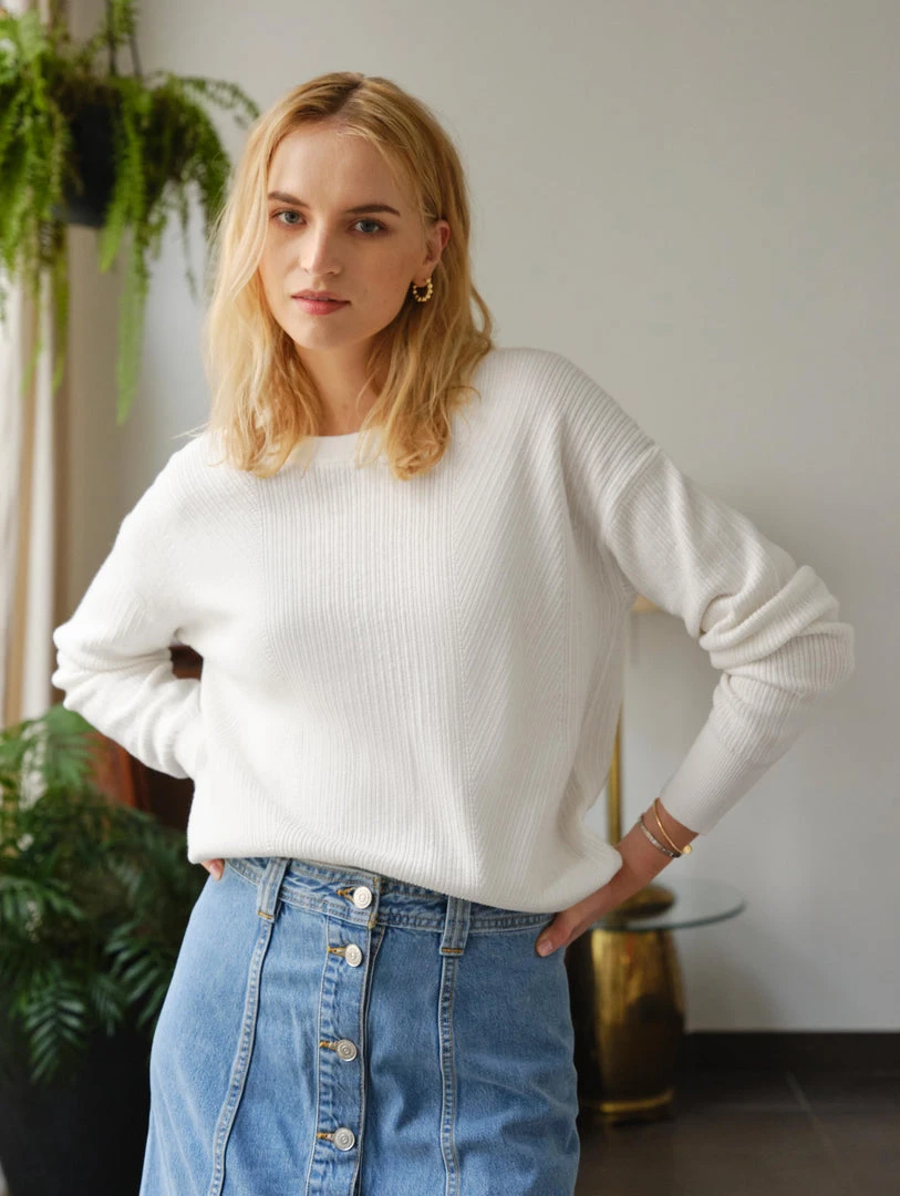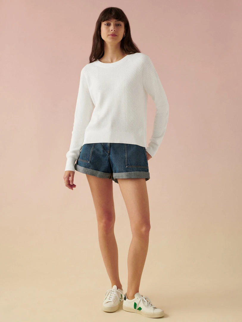 Searching for the perfect transitional sweater? Hitting mid hip, this crewneck was specially designed with an easy throw-on-and-go body. The slightly fitted sleeves ensure the fit remains flattering, while a multi rib pattern subtly elevates the staple style. What’s more, it’s crafted from soft cotton that’s certified by the Better Cotton Initiative (BCI) and blended with COOLMAX® cooling technology.