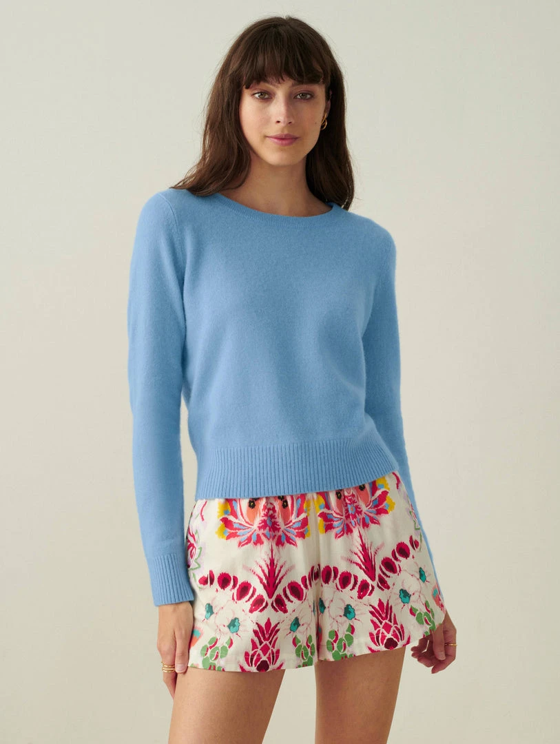 In creating our newest Essential, our designers envisioned a sprightlier little sister to the iconic Essential crewneck. The end result is a shrunken silhouette with a lean feel that’s nothing short of figure-flattering. The waist-shaping fit makes it easy to style back to denim, high-waisted trousers, and skirts. It complements the Cashmere Travel Wrap perfectly—and with a rainbow of hues to choose from, the color combinations are endless.