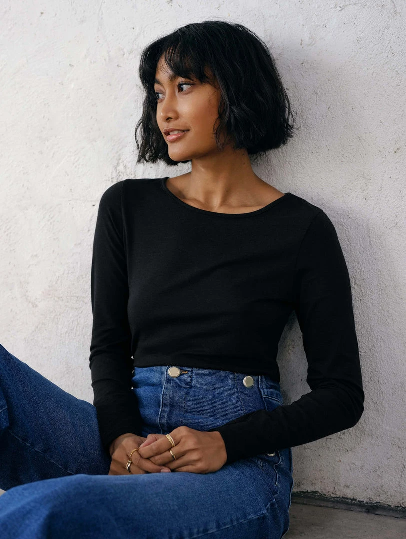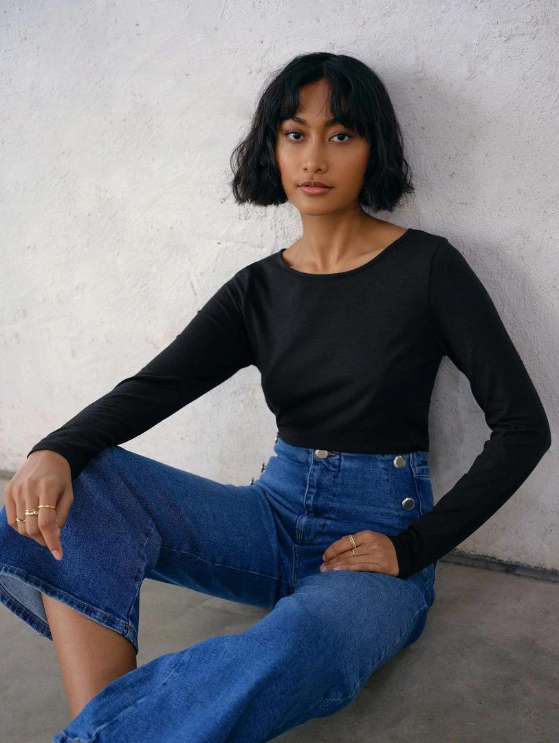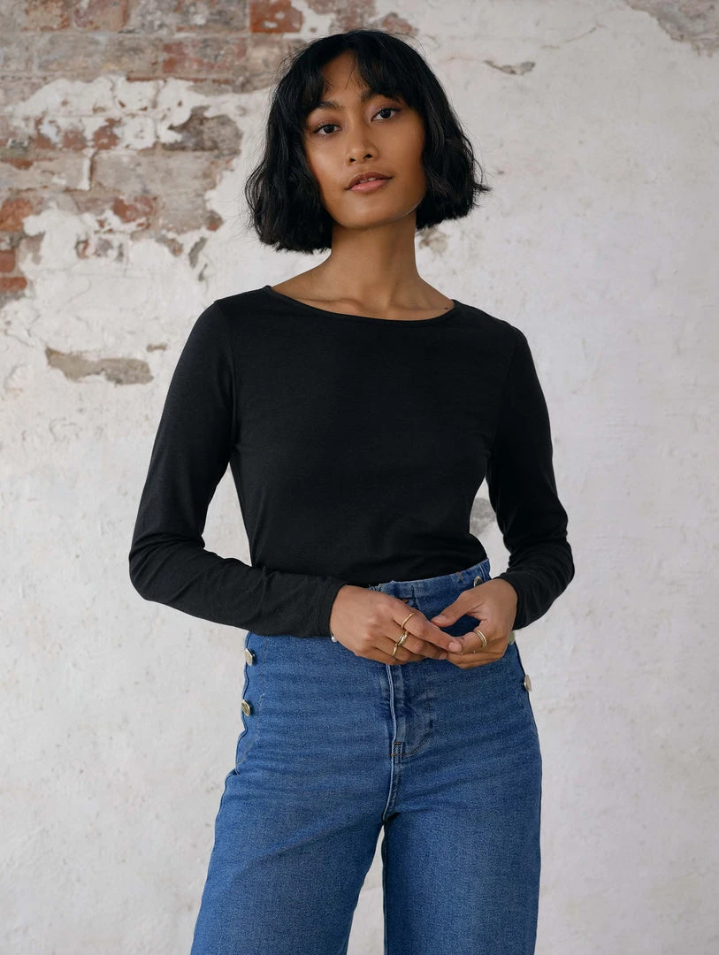 One of our favorite necklines for the season, the boatneck, is offered in our famously soft cotton modal. A best-seller for seasons, you’ll love this wardrobe basic because of the perfect fit and next-level fabric. Peruvian cotton modal is the ideal weight: it’s substantial with just the right amount of stretch and is buttery soft. Best of all? It’s machine washable, so you can wear, wash, and repeat and this tee won’t lose its shape.