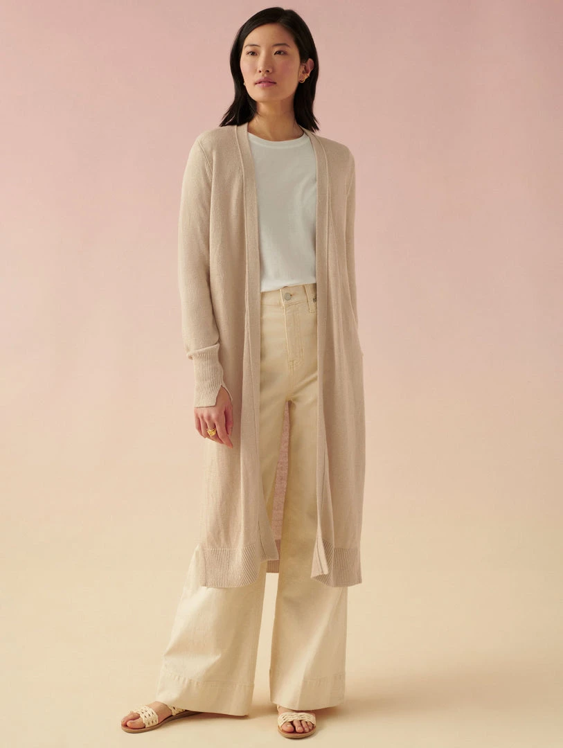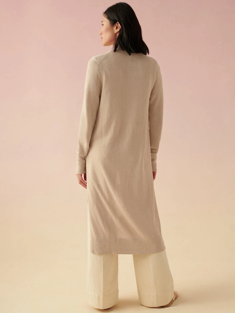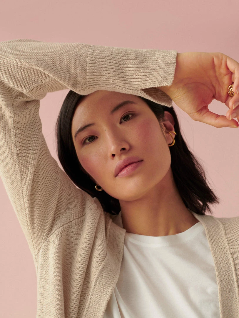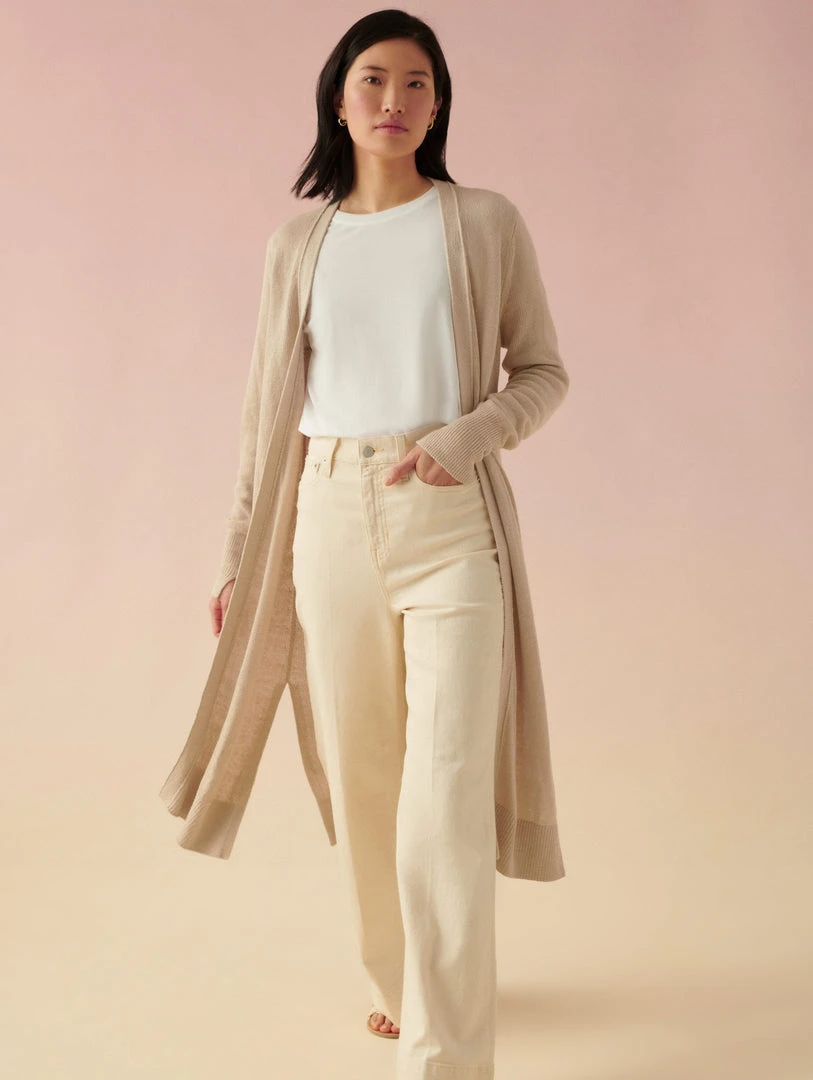 This cardigan acts as a key transitional piece that will take you seamlessly from one season to the next. The linen-cotton blend knit is substantial in weight, meaning it can double as outerwear. The open nature of the lengthy silhouette pairs back well to our matching ribbed tank.